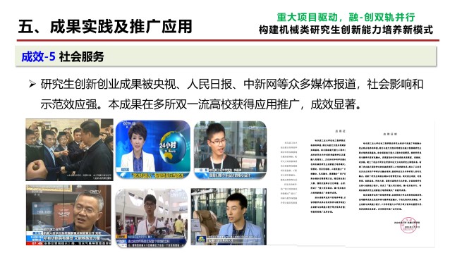 科教成果有力地支撑了机械工程学科获评A+。中央电视台、人民日报等媒体对育人成效给予了广泛报道,同时被国内多所双一流高校借鉴推广。