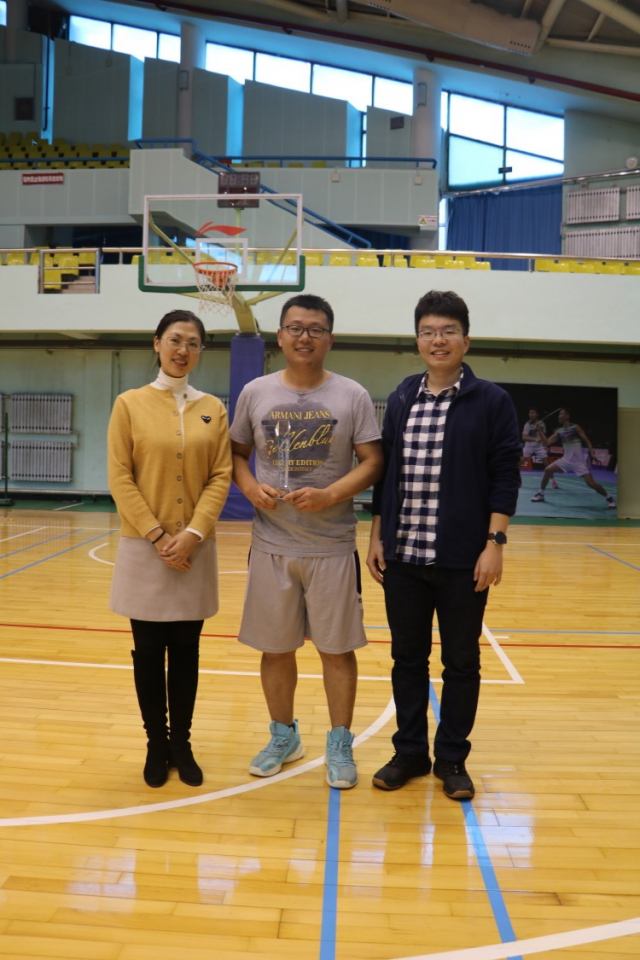 赛后,蒋楠老师、孙宗斌老师、王旭东老师分别为冠亚季军队伍颁发奖杯并合影留念,机电学院“新生杯”篮球赛也圆满落幕。