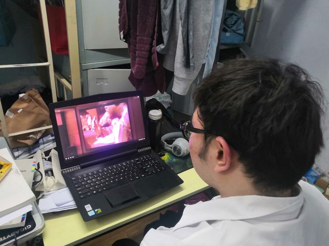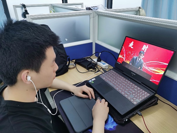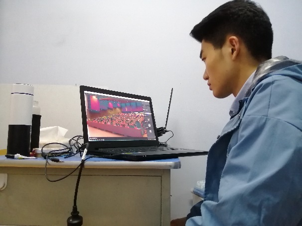学生会文体部副部长刘伟峰在观看直播
