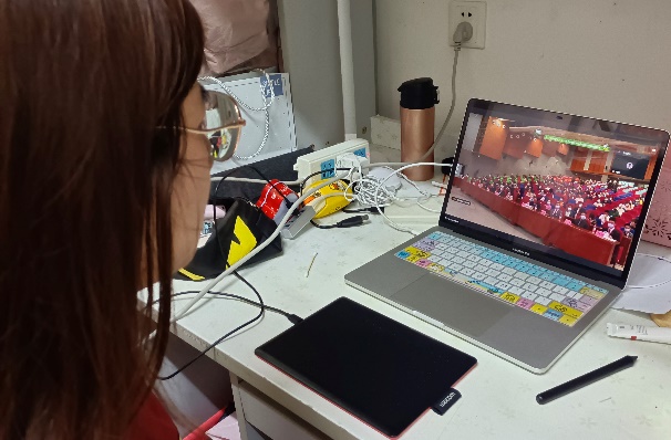 十楼阿卡贝拉社团负责人陈冠彤在观看直播