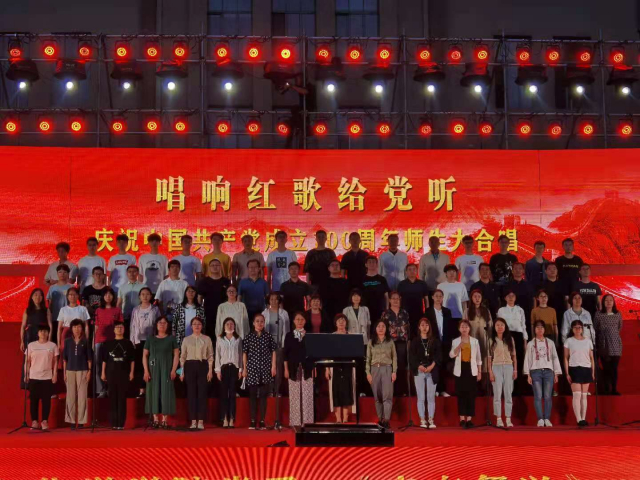 现场合唱团则由100名师生组成,从5月底开始,合唱团成员充分利用休息时间练习《唱支山歌给党听》和《我们走在大路上》两支传承红色基因的歌曲,在曲调中感受百年岁月峥嵘,在歌词中追忆祖国光辉岁月。