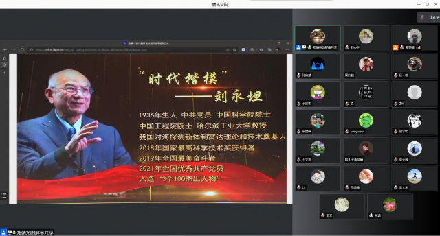 2021年10月29日晚,黑龙江省委宣传部和哈尔滨工业大学联合举办了“时代楷模”刘永坦先进事迹报告会,机电学院院办机关党支部以线上和线下相结合的方式组织院办全体教职工参与观看,其中机电学院党委副书记吕焱和学院全体辅导员于机械楼1024线下观看,其他教职工通过腾讯会议平台线上观看。