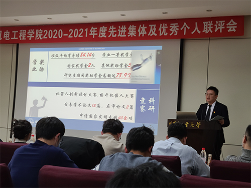 为深入贯彻落实习近平总书记“七一”重要讲话精神和习近平总书记致我校建校100周年贺信精神,贯彻落实党的教育方针,传承和弘扬学校“政治引领、典型引路、品牌带动、校训育人”的优良传统,2021年11月17日晚,白菜社区 在活动中心326召开2020-2021年度先进集体及优秀个人联评会。白菜社区 党委副书记吕焱、航空宇航制造工程系青年教师丁烨、学院团委书记孙宗斌,以及各年级辅导员和学生代表作为评委参加此次联评。