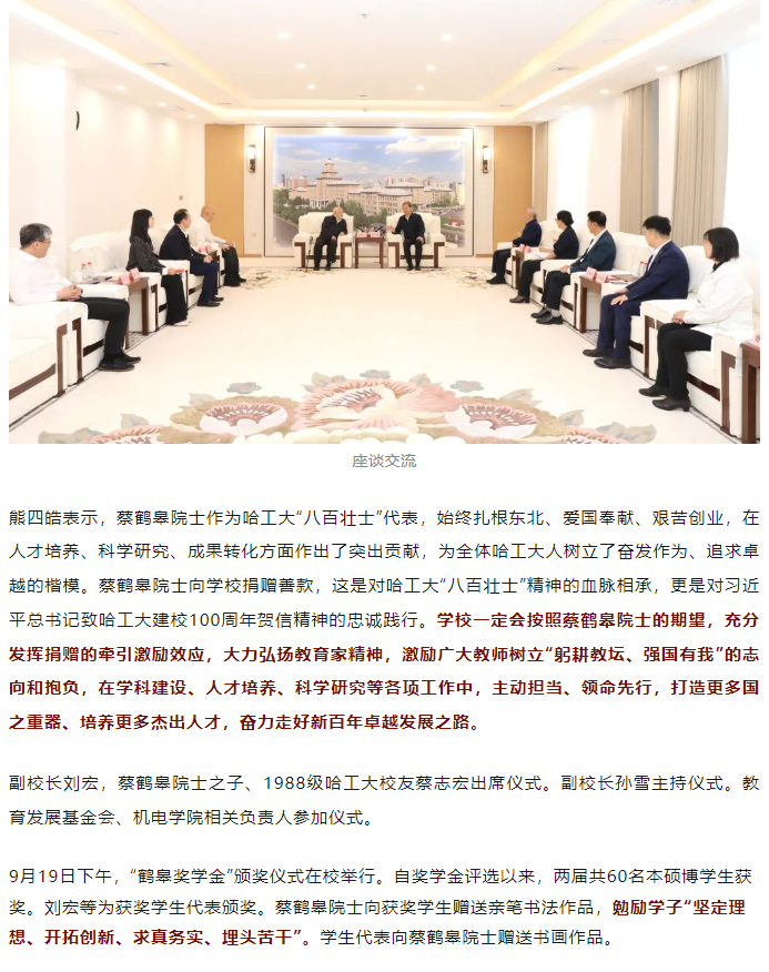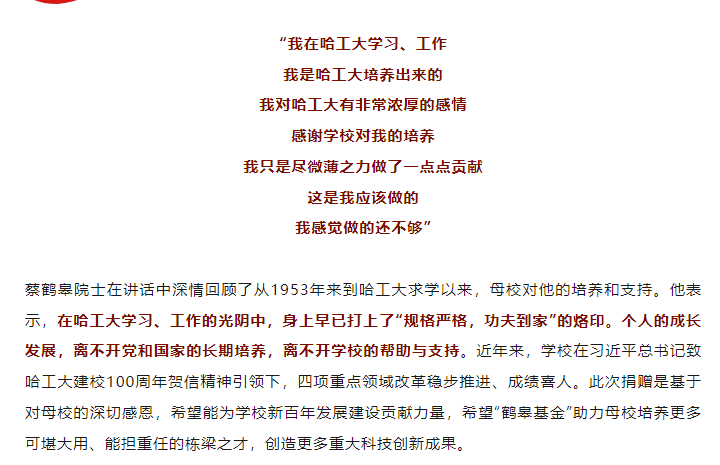 捐赠735万元!“90后”院士蔡鹤皋助力哈工大新百年发展建设