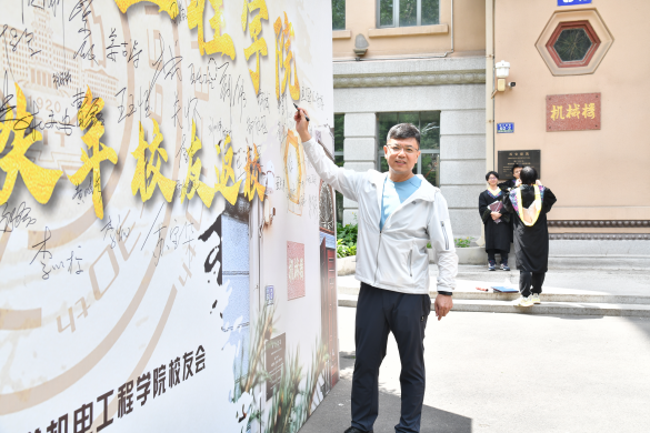 上午8时许,校友们陆续返回学校前往机械楼报到,同时领取学校、学院精心准备的纪念品,每一份都粘贴着校友自己的姓名,校友们倍感温馨,并纷纷在签名墙前合影留念。
