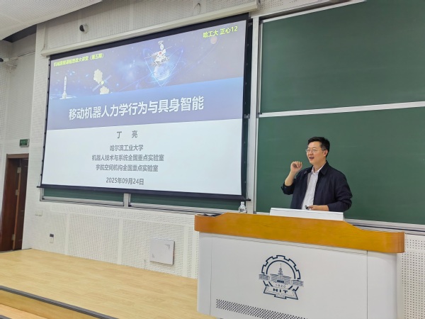 丁亮教授作了题为“移动机器人力学行为与具身智能”的主题报告。他结合自身科研经历,重点介绍了研究团队在轮式与足式移动机器人的地面作用力学模型、基于力学的星球车移动智能,以及多足机器人智能感知、规划、控制等方面取得的学术研究成果,并阐述了相关成果在“玉兔”系列月球车、“祝融号”火星车中的应用。