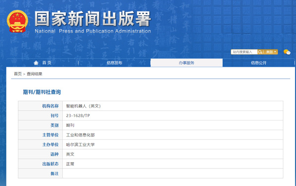 近日,经国家新闻出版署批复,依托哈工大白菜社区 和机器人技术与系统全国重点实验室创建,由哈尔滨工业大学与Wiley联合推出的国际学术期刊《智能机器人(英文)》(SmartBot)正式获批国内统一连续出版物号(CN号):CN23-1628/TP,并获颁期刊出版许可证,标志着SmartBot作为中国科技期刊卓越行动计划高起点新刊项目,基本完成创刊任务,在规范化、专业化发展领域迈出关键一步,正式转入高质量运行阶段。
